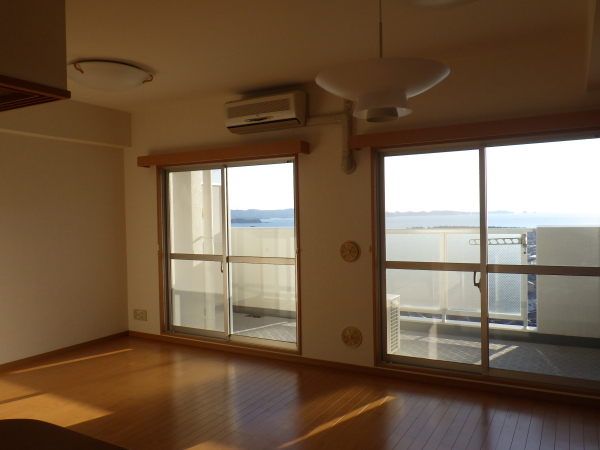 分譲マンションの賃貸物件です。温泉棟利用付。バルコニーから海が見えます。