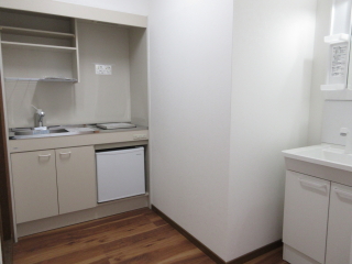 | 設 備 | エアコン付、バス・トイレ別、フローリング、洗面所独立、バルコニー付、即入居可、給湯、シャワー、1口電気コンロ、ミニ冷蔵庫、洗髪洗面化粧台、照明器具、カーテンレール |