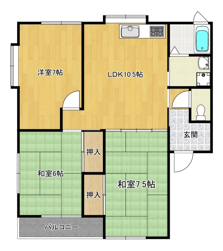 | 間取り詳細 | 和7.5,洋7,和6,LDK10.5,洗面所,バス,WC |