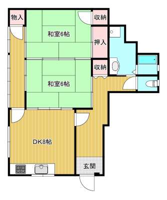 - 和室6帖、和室6帖、DK8帖、トイレ、バス、