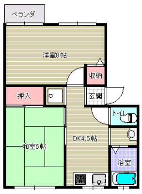 - 洋室8帖・和室6帖・DK4.5帖・バス・トイレ