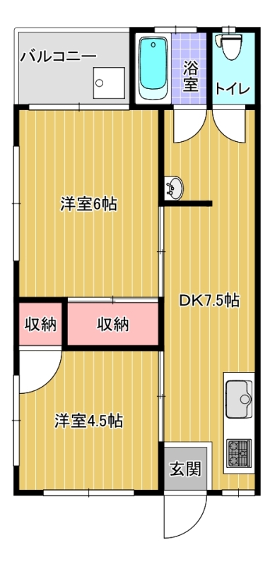 - 洋4.5帖・洋6帖・DK7.5帖・バス・トイレ