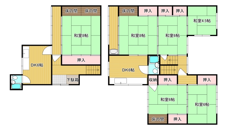 - 和8×2、和6×3、和4.5、DK6×2、バス・トイレ×2