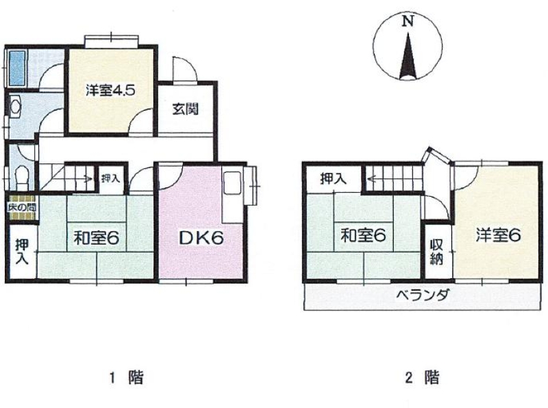 - 1階 DK6、和6、洋4.5、洗面脱衣、浴室、トイレ