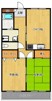 | 間取り詳細 | 和6,洋6,DK7.5,洗面所,バス,WC |