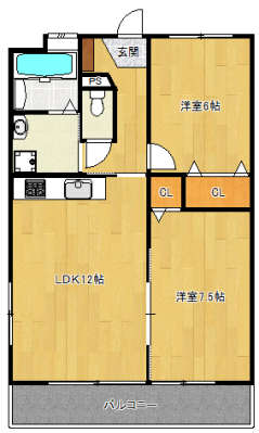 | 間取り詳細 | 洋7.5,洋6,LDK12,洗面所,バス,WC |