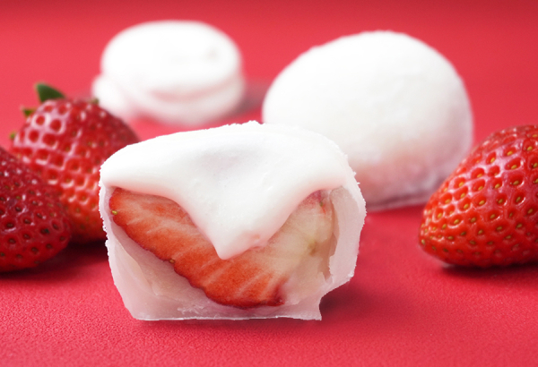 1個 ¥650、小サイズ ¥420人気のフルーツ大福に、期間限定で「ぜいたくチョコ苺大福」が仲間入り。クーベルチュールチョコレートを使用した自家製チョコあんで、2Lサイズ以上のイチゴを丸ごと包んでいる。さらにチョコレートでコーティングすることで、パリッとした食感も楽しめる。自家製練乳クリームがあふれ出す「ぜいたく練乳苺大福」もオススメ。